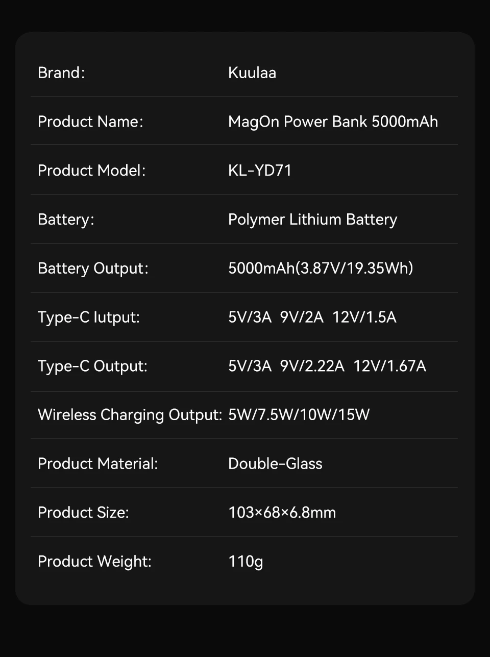 KUULAA Magnetic Power Bank 5000mAh Wireless 15W