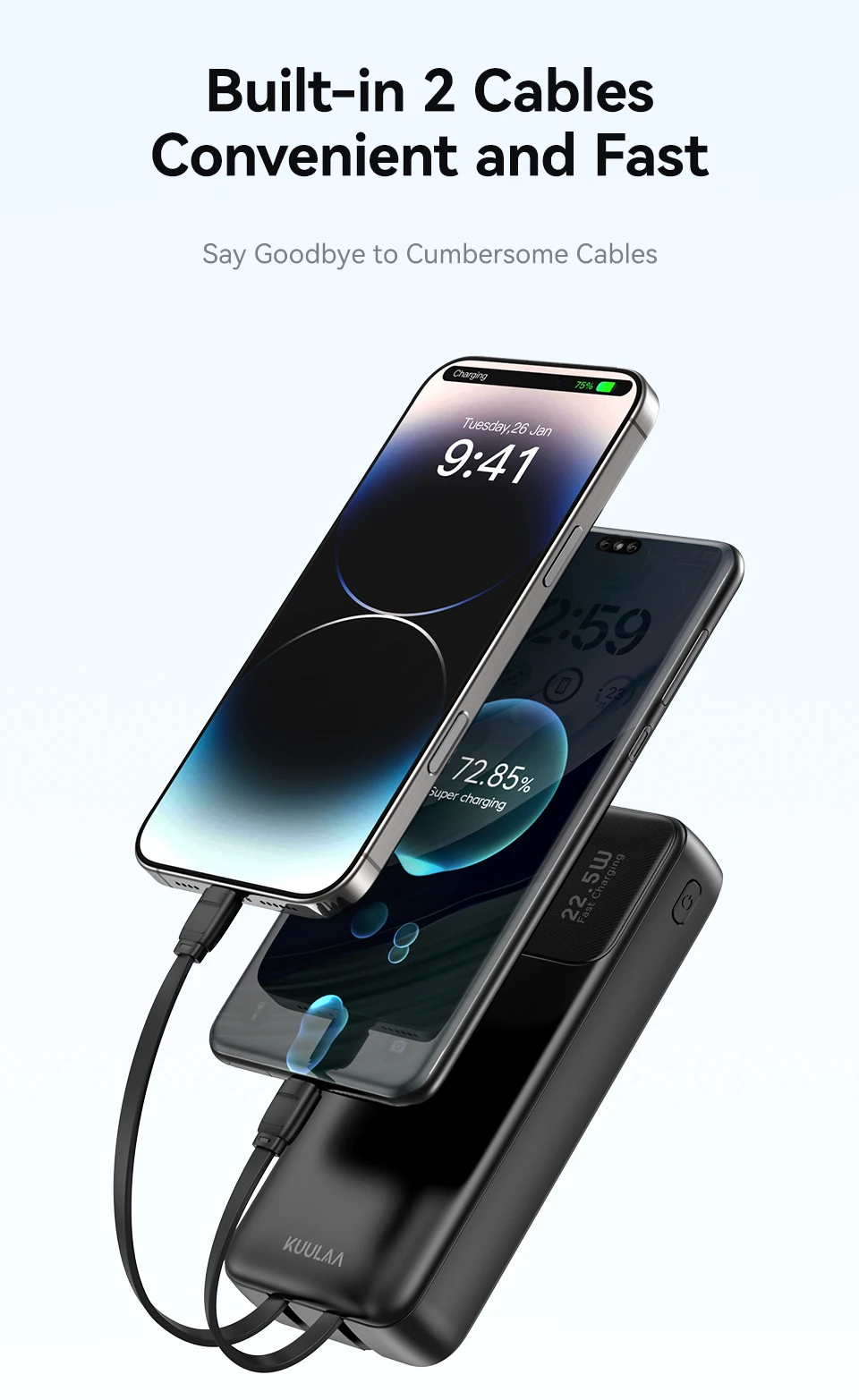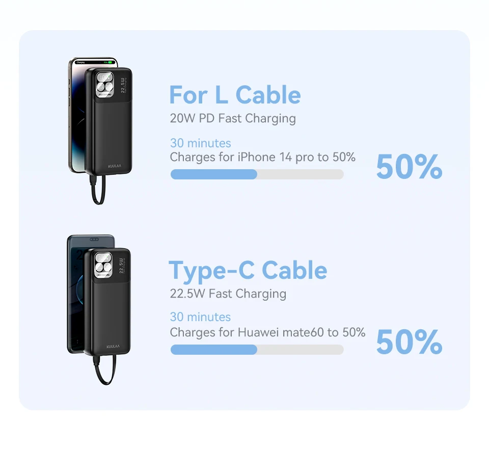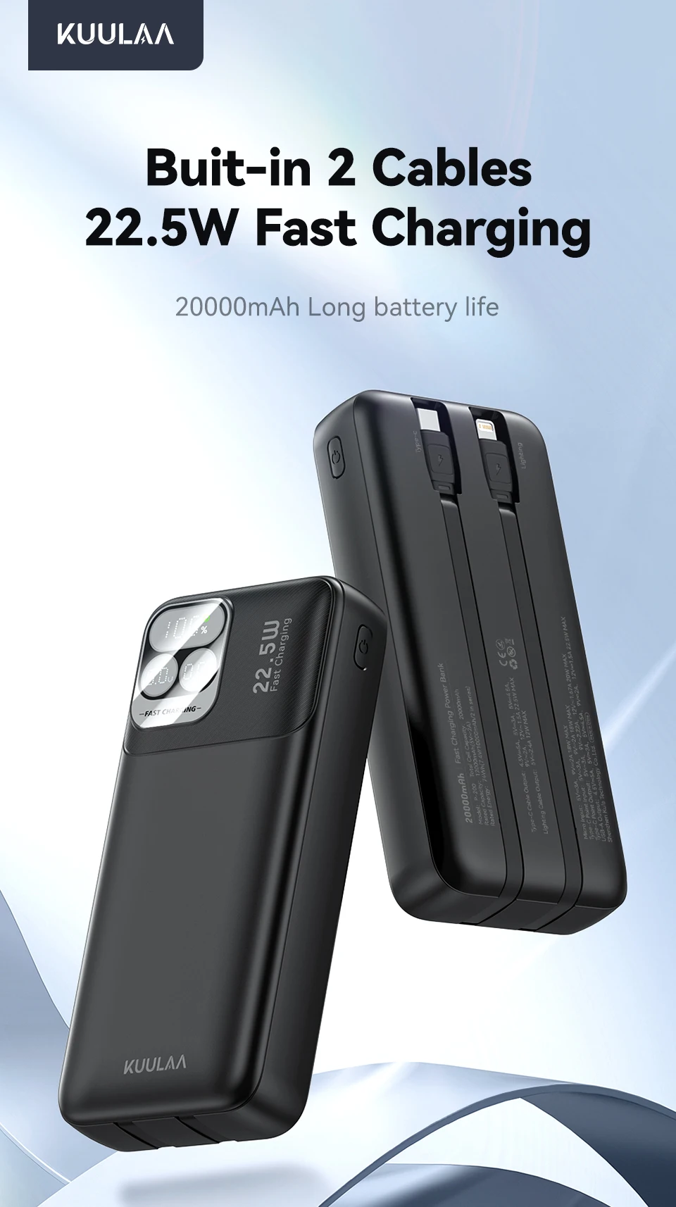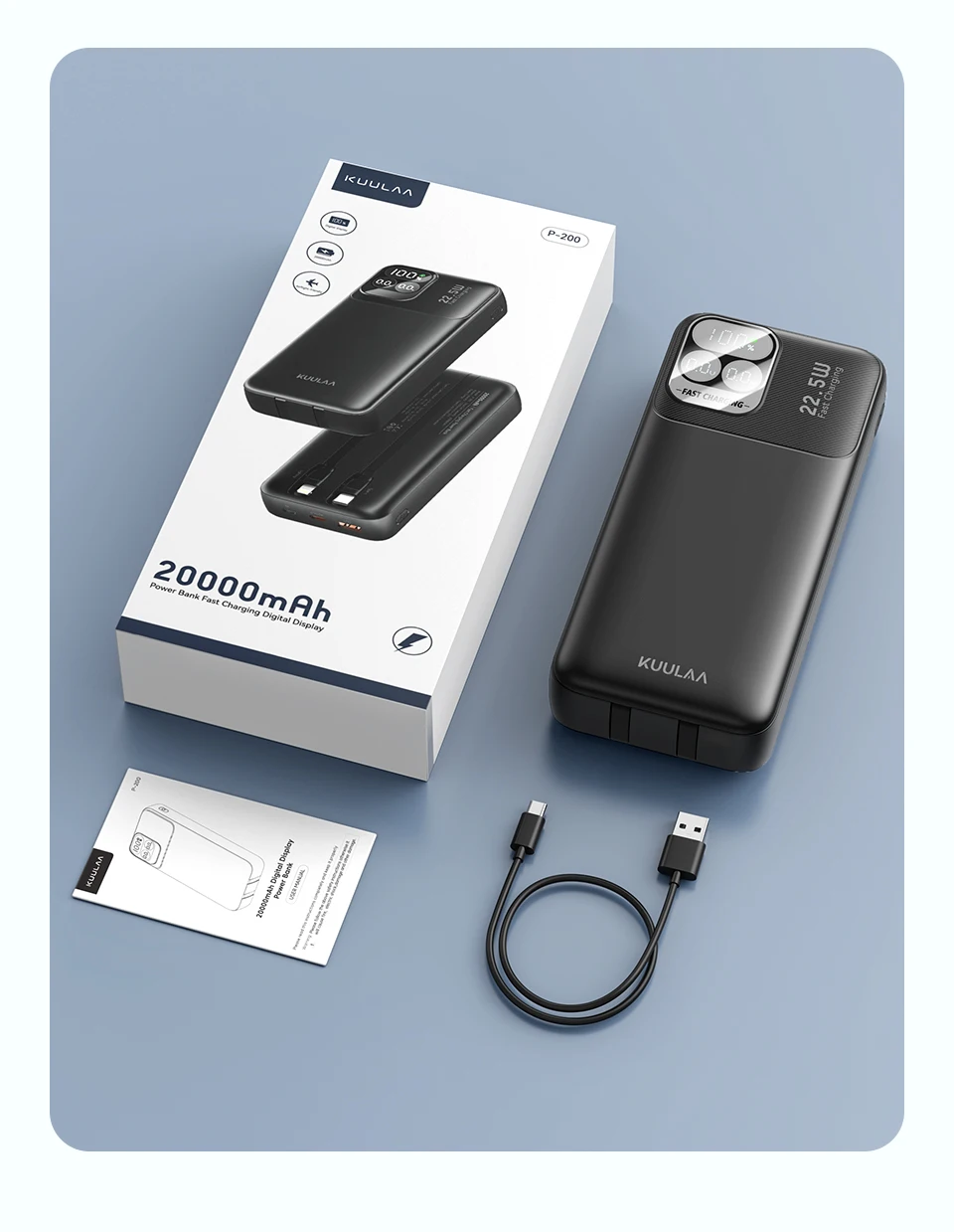KUULAA P-200 20000mAh Power Bank Portable 22.5W Digital Display