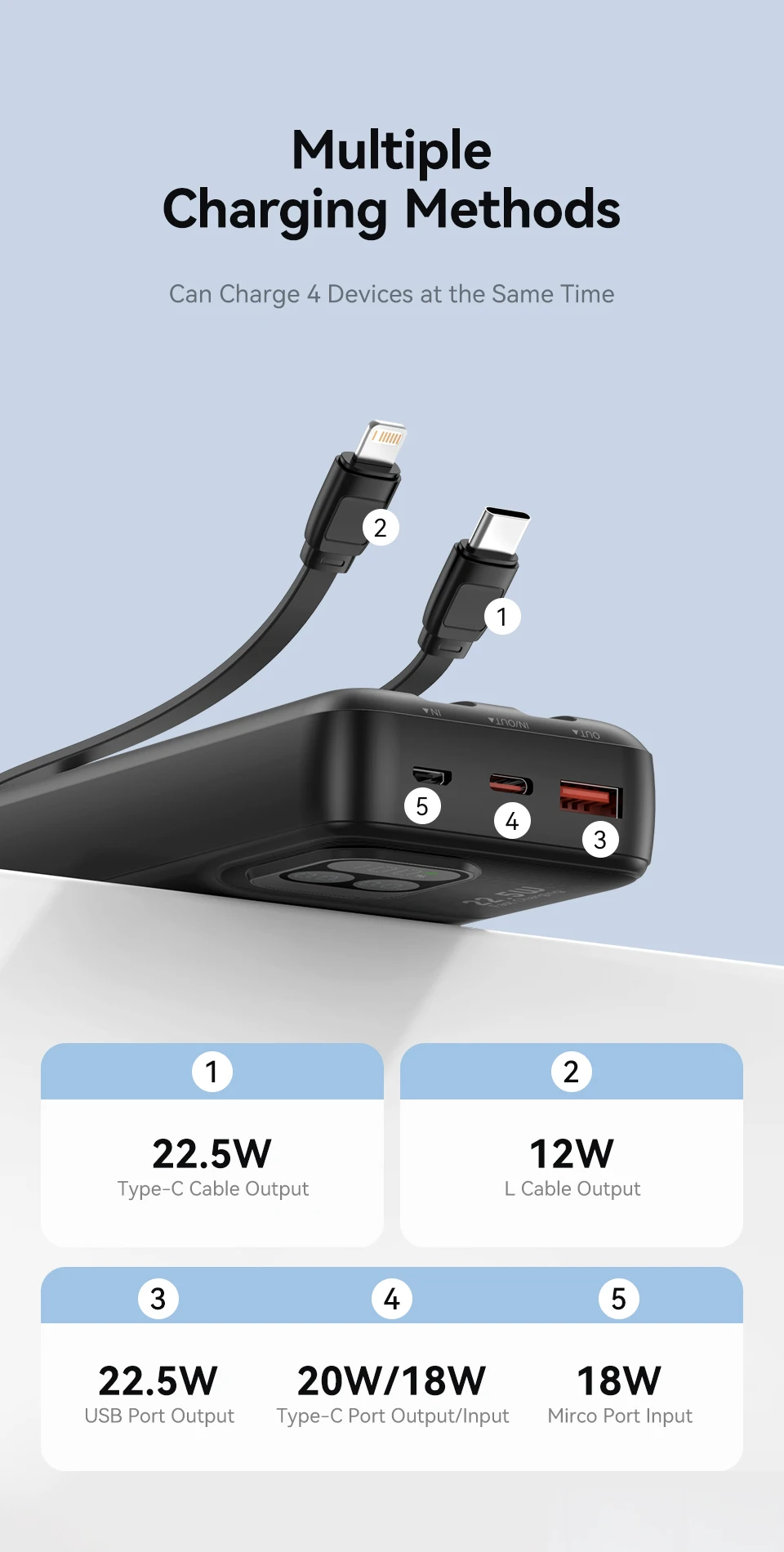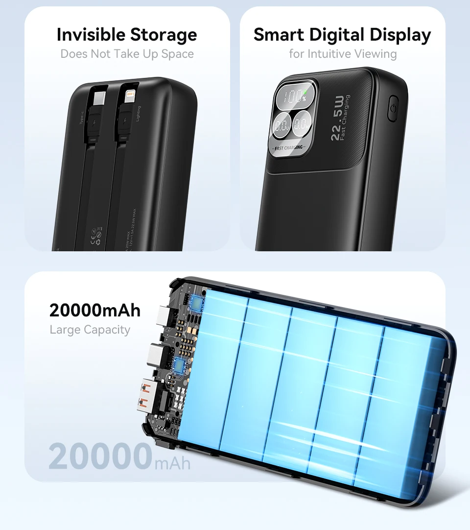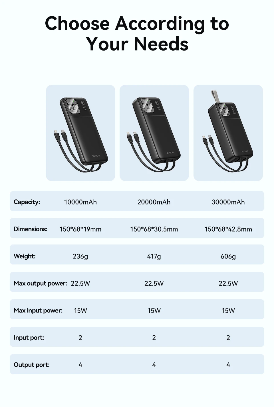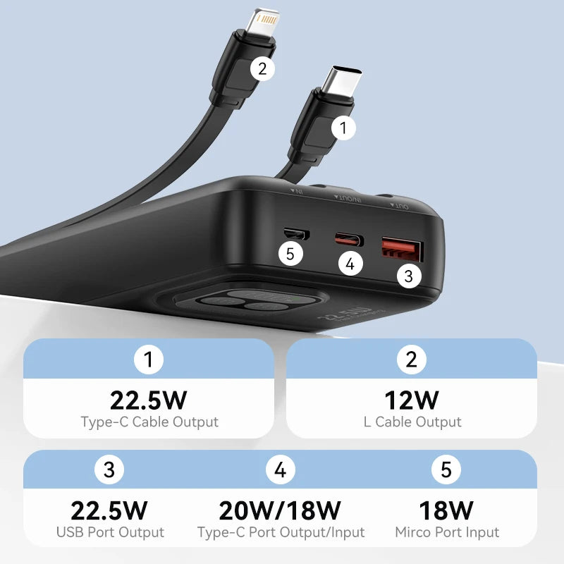 KUULAA P-200 20000mAh Power Bank Portable 22.5W Digital Display