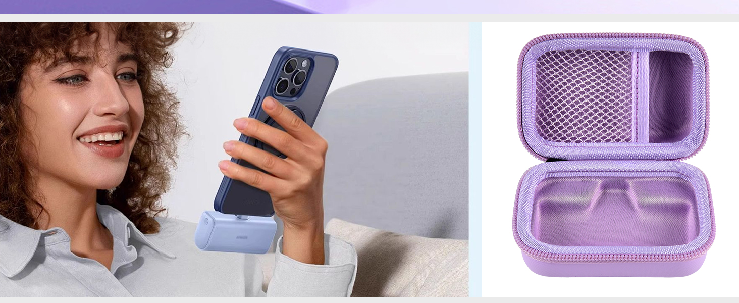 Power Bank Protective Holder with Hard Anti-Drop Material and Holds Both for iphone Connector and for Android USB C Phone Battery Power Bank - Outer hard shell material, scratch-resistant, wear-resistant, effectively protects your battery charger from impacts, dents scratches. The bag for battery pack charger portable provides durability long-lasting performance, greatly extends the service life of your phone charger.