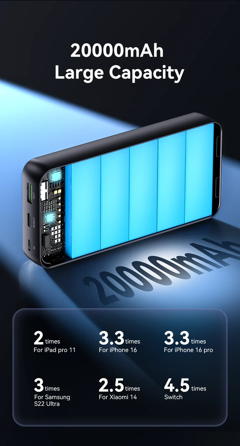 20000mAh Large Capacity, Fully Meets Your Charging Needs