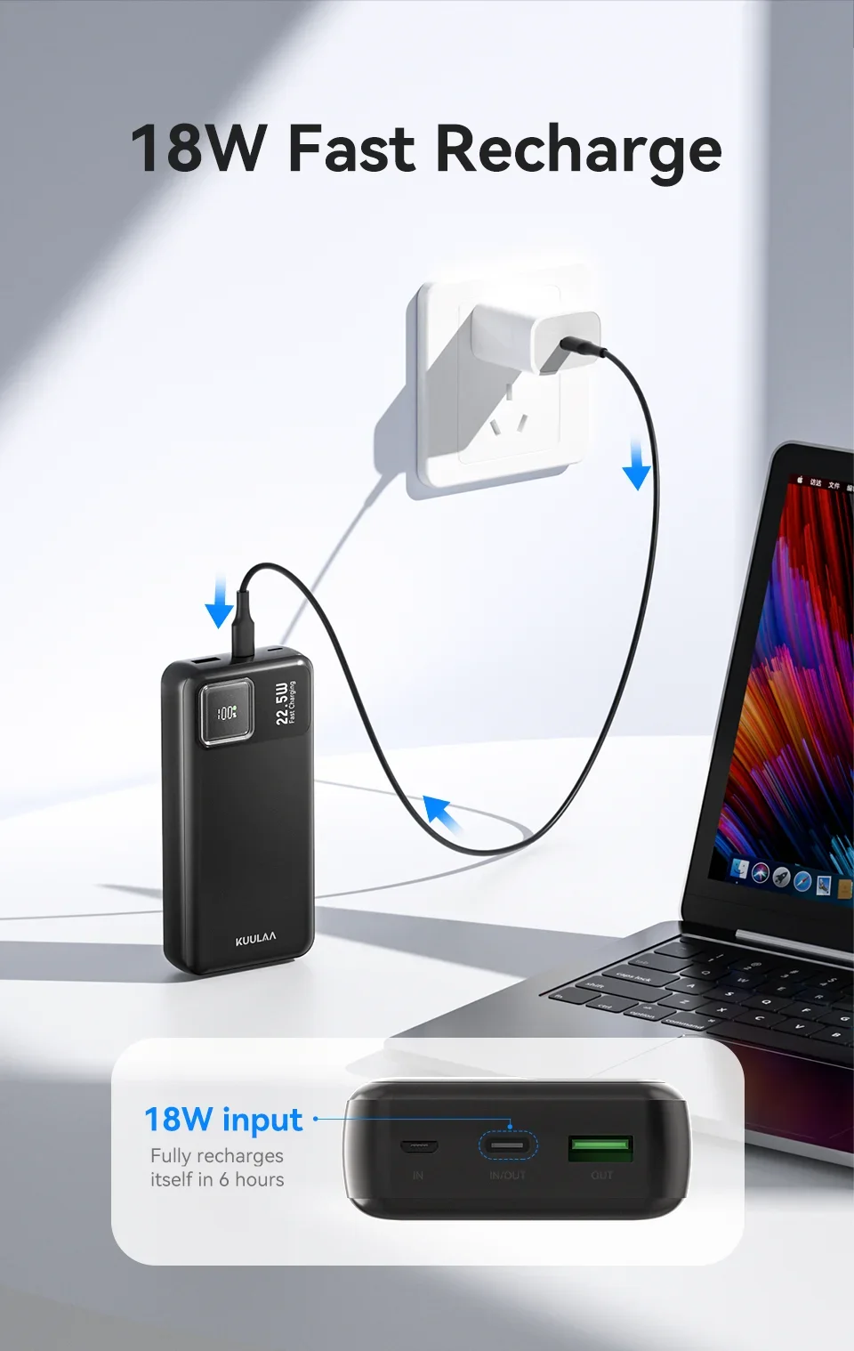 LED Digital Display, Real-Time Power Bank Battery Level Indication.