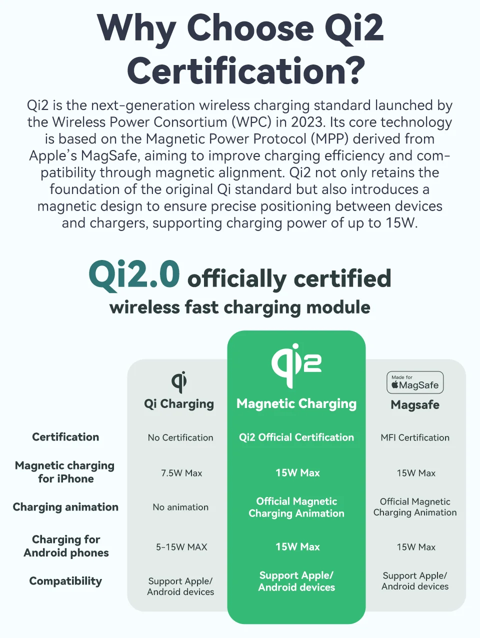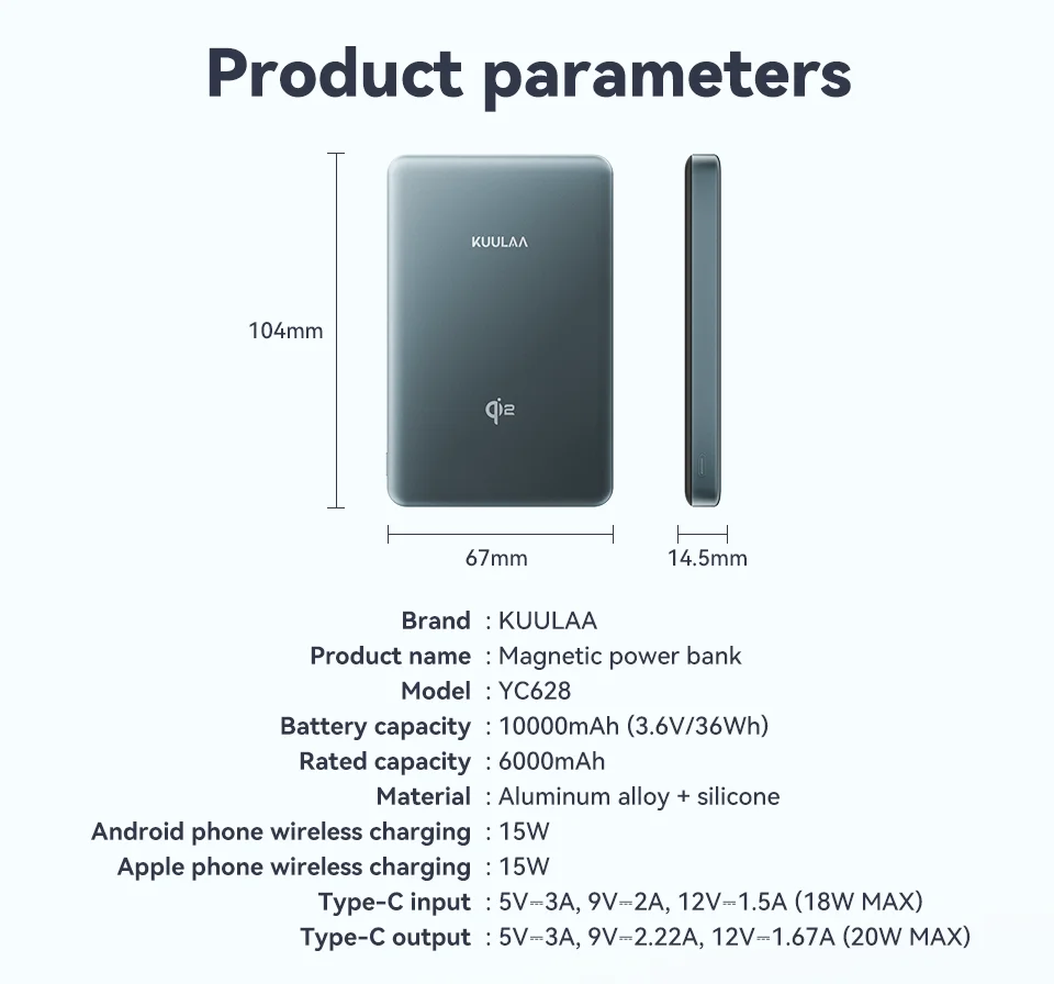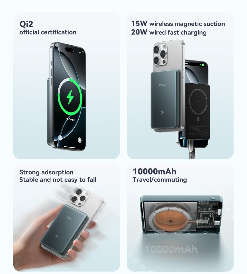 Qi2 Magnetic Power Bank 10000mAh 15W Wireless Charging